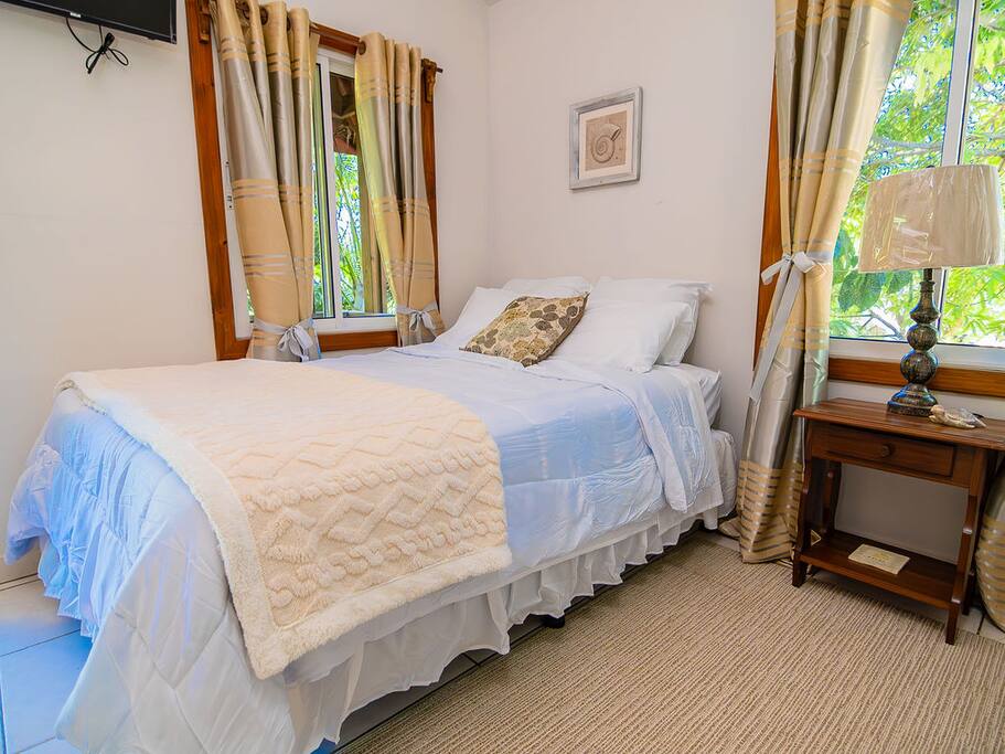 Tropical Tides 🌴 is our curated collection for travelers who love to pack light and enjoy all the fun at one of Roatán’s best beaches, West Bay Beach 🏖️. This cozy room is in a well-maintained building and offers everything you need for a comfortable stay. It’s simple, clean, and perfect for guests who want comfort, great value, and an unbeatable location. ☀️🏖️ Serena 🌿 is located in Tropical Tides I, just steps from the beach. Guests enjoy free parking and access to the shared pool 🏊♂️, available exclusively for Tropical Tides guests The room is on the second floor of Building One and features two full-size beds (sleeps up to 4). It also includes a small fridge, microwave, and one bathroom 🛁 for a comfortable stay by the beach