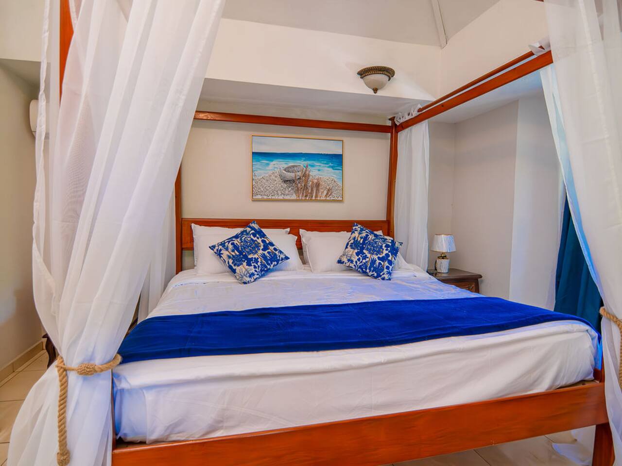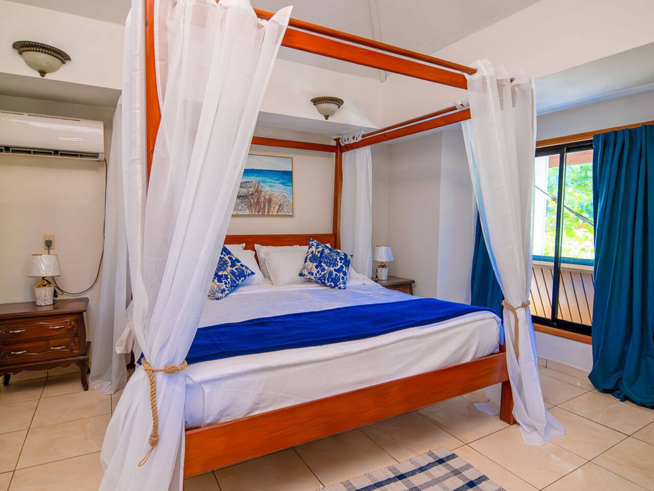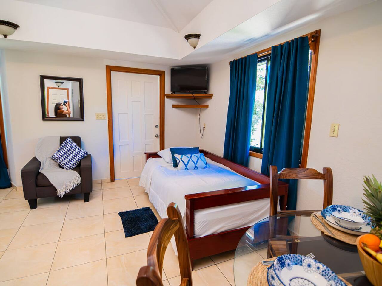 Mareva is designed for comfort, elegance, and a true island experience. This spacious second-floor suite includes: 🛏️ Sleeping Arrangements Majestic king bed with a grand headboard and elegant canopy-style curtains Single bed for an additional guest Premium linens for a restful sleep 🛋️ Living & Dining Comfortable living area Dining space perfect for meals or working 🧊 Mini fridge for drinks and snacks 🛁 Private Bathroom Fully private bathroom with essentials 🔐 Private Entrance Direct, private access to your suite for added privacy and convenience 🌅 Private Ocean-View Balcony Beautiful front balcony with: 🌊 Ocean views 🛌 Hammock Outdoor seating Perfect for sunrise coffee or sunset relaxation. 🏊 Shared Pool Guests enjoy access to a refreshing shared pool surrounded by tropical palms—ideal for cooling off after the beach or relaxing in a peaceful setting. 🪜 Location Located on the second floor of Tropical Tides II, offering elevated views and enhanced privacy